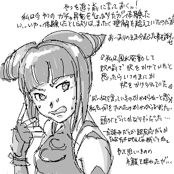 メインは相変らずジュリだけど、ウルコンは風水ですよ風水エンジン! 風波があるとはいえ中央の立ち回りと固めが貧弱だから、普段は我慢して こかしてから風水発動からのラッシュでいろいろ発散してますよ 運搬能力もあるし、面端ともなりゃヒャッハーし放題ですよ(※例外アリ) トリアエズ初心者なりにある程度パターン決めて刻んで中段と当て投げとグラ潰しで択迫るみたいにやってるが、いつかはアドリブでいきたいよね というわけで初心者なり風水メモ 飛び込みもしくは密着基本ルート 2弱K>2弱K(目押し)>5中P>2中K>5大K>大風車 2弱K>2弱K(目押し)>5中P>6中K 2弱K>2弱K>投げ 2弱K>2弱K>5弱K>5中P>2中K>2大K>弱風車 2弱K>2弱K(様子見)5中P>6中K 初めの2弱KHTI確認でコンボに繋ぐか崩しにかかるかみたいな 遠めルート 5中P>6中K 5中P>2中K>2大K>(なにか) 遠目はHTI確認無しでお願い中段なかんじ まずはこれだけ覚えて何とかごまかしてたりね しかし風水使うようになって3232昇竜がほんと恐怖だわ ジュリのバクステじゃ引っかかるから、様子見意外全負けだし、しかもそれがしゃがみっぱでオートで出るからね アマブレつくから当て身でキャーかこいーもできないしね 323で出る昇竜は、本来のそれとは別の技(ダメ10くらいの劣化昇竜とか)設定して欲しい |