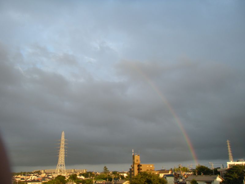 こりゃ虹フラグ成立したかなと思ってデジカメ片手に速攻階段を駆け上がって、夕日の反対見たら案の定虹が架かってた